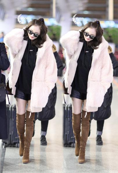 网友晒出偶遇杨幂的照片,图中,杨幂上身穿着挺厚的毛外套,下半身仍是最爱的高筒靴,但是露出小半截大腿在寒风中冻的瑟瑟发抖。