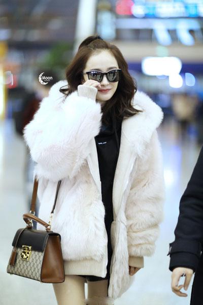 看看杨幂脸上的表情,似乎冻的灰白,这典型的不要温度只要风度。