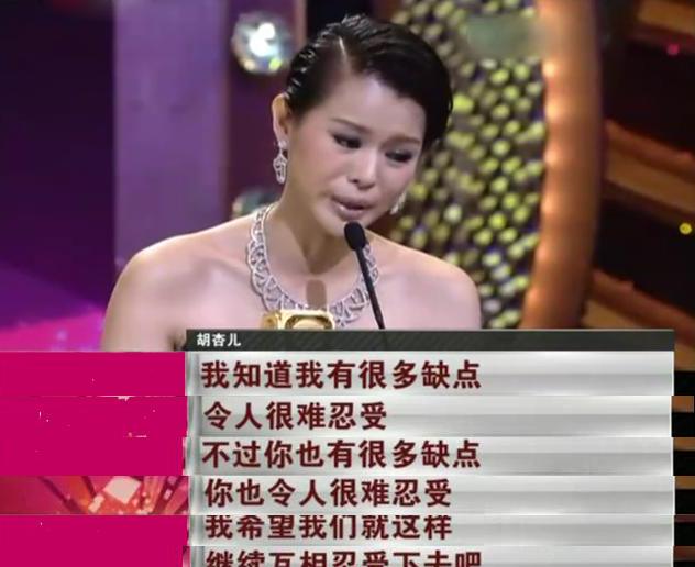 “如果我拿到奖,我就在颁奖礼上公布恋情”,果然在2011年的时候胡杏儿拿到了无线颁发的奖,就在颁奖礼上,胡杏儿终于大方承认了与黄宗泽的7年地下情。当时,胡杏儿的真情告白感动了无数人。