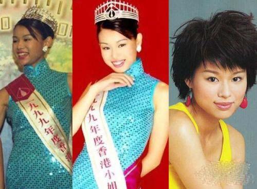 胡杏儿出道时参加港姐时的照片,那时丑爆啦