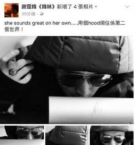 谢霆锋晒出一张帅照,并配文:“she sounds great on her own!”疑似力挺王菲。照片中,谢霆锋戴着墨镜,手持雪茄,趴在桌子上帅气十足。