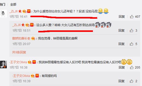 其中一位网友留言说:"为什么感觉你比你女儿还年轻??实话 没拍马屁",