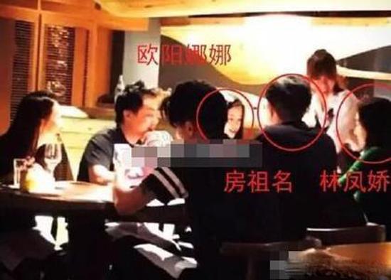 网友找出的欧阳娜娜与房祖名、林凤娇共进晚餐的照片
