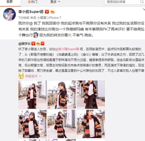 李小璐随后转发并写道“既然你@ 我了 我就回答你 我的起点高与不高跟你没有关系 我过我的生活跟你没有关系 我的演技比你高出一个珠穆朗玛峰 有本事跟我PK了再来评价 要不咱俩尬个舞也行因为我的转发你要火 不客气 晚安。””