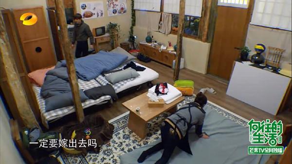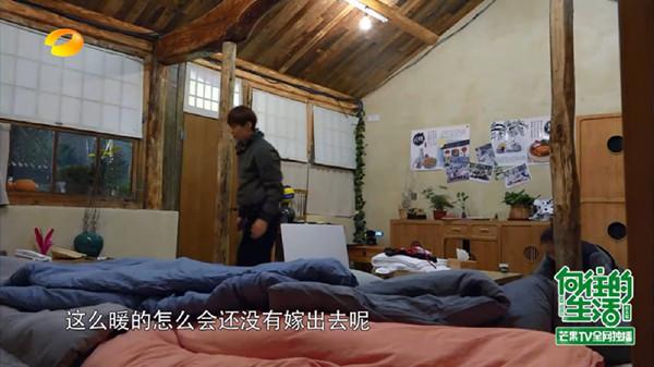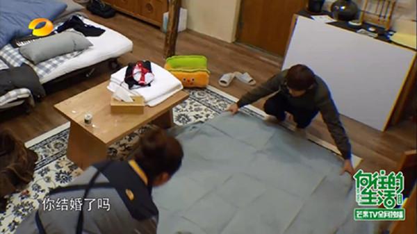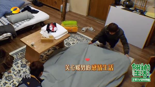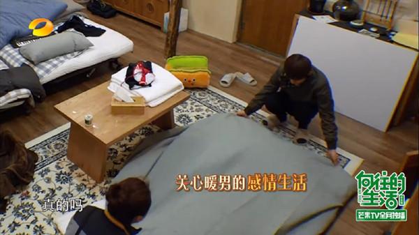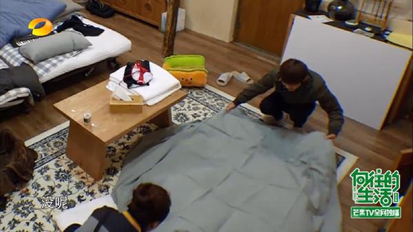 何炅正在给黄磊的学生曾晖整理被子