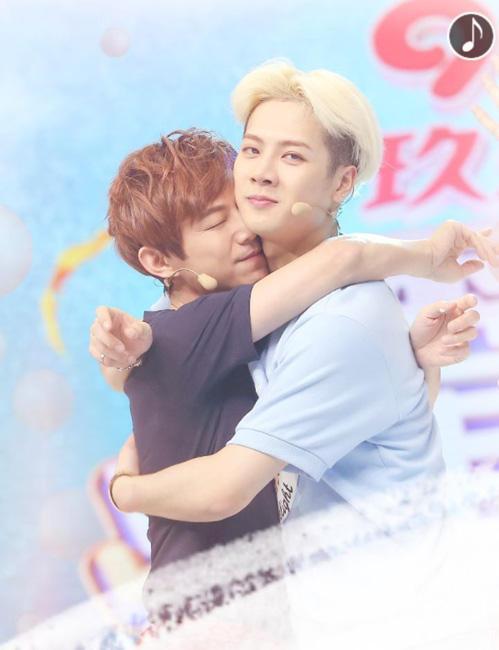 何炅在《透鲜滴星期天》和王嘉尔亲密互动