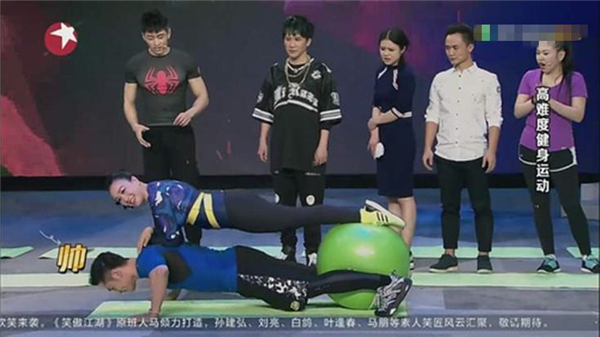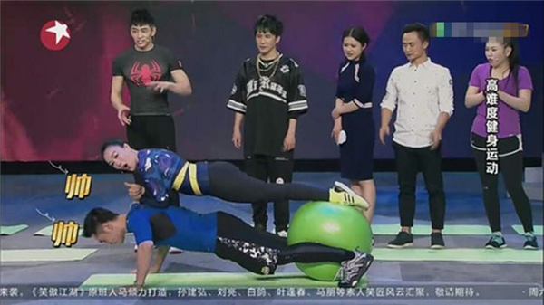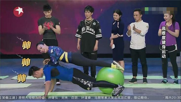 两人在节目刚上场就开始表演平时“扎实”的健身情景..