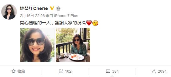 昨天是女神钟楚红57岁的生日,钟楚红在微博感谢大家的祝福,并晒出素颜照。