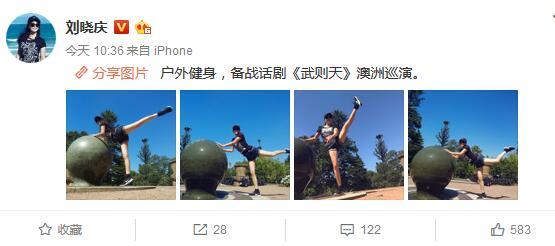 刘晓庆发微博配文:“户外健身,备战话剧《武则天》澳洲巡演。”