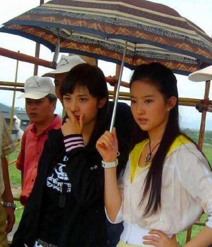 十年前刘亦菲和杨幂合照,那时杨幂还是十足的小小花。照片中的杨幂正在为刘亦菲撑伞。从服饰和发型来看,当时二人正在拍摄《神雕侠侣》,刘亦菲饰演女主角小龙女,作为新人的杨幂出演配角郭襄。撑伞的杨幂十足新人一枚,如刘亦菲身边的小助理。