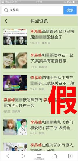 3月8日下午,李易峰官方资讯发微博称:“ 峰哥最近真的很忙,没空跟各位“她”谈恋爱传绯闻,求放过~最后,女王节快乐~”并放出了多张相关绯闻的报道图,同时在那些绯闻图上标注出一个大大的“假”字。虽然把女方的名字打了马赛克,但明眼人一看就知道是吴昕。
