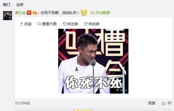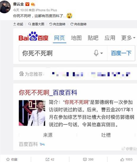 今日,曹云金发了条微博:你死不死啊,这都有百度百科......