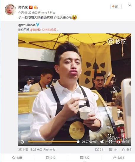 有网友在微博发了一段黄磊嘟嘴卖萌吹泡泡的小视频,并@了高晓松,还来了一句:比你可爱。