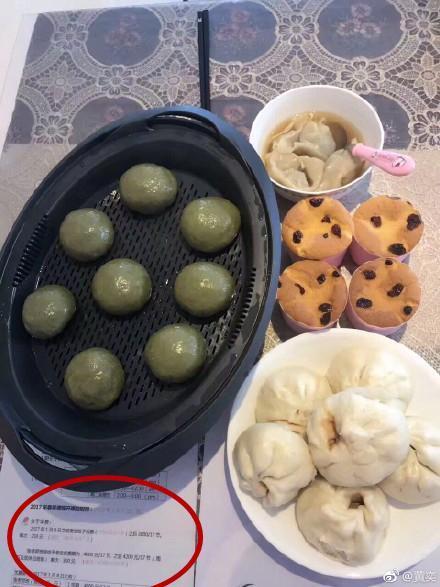 在一些好事网友的提醒下,黄毅清再次更新微博“夸黄奕”,因为在最后一张照片青团这盘食物下面还压着一张纸,是一张学费清单。
