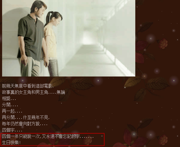 与杨俊毅分手后,陈法蓉始终放不下这段感情,2007年5月1日陈法蓉在博客上更新日志“生日快乐”,虽然主题指的是电影,但字里行间还是能够看出猫腻,四个一年恰好指的是四年。