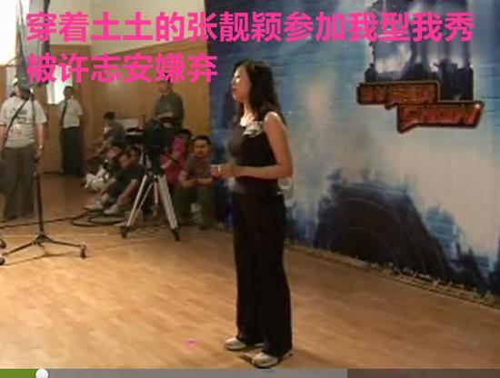 2004年,在酒巴驻唱多年的张靓颖参加东方卫视的“我型我秀”海选,当时的评委是MTV北亚洲执行总裁及董事总经理许智伟和香港著名男歌手许志安,当时两位评委以张靓颖唱歌和打扮太土气为由将她淘汰。http://image.uc.cn/o/wemedia/s/2017/b5f40f67711ec721c2fb4bc30f016dd8x550x364x31.jpeg;,3,jpegx;3,700x.jpg张靓颖自信得无可救药!