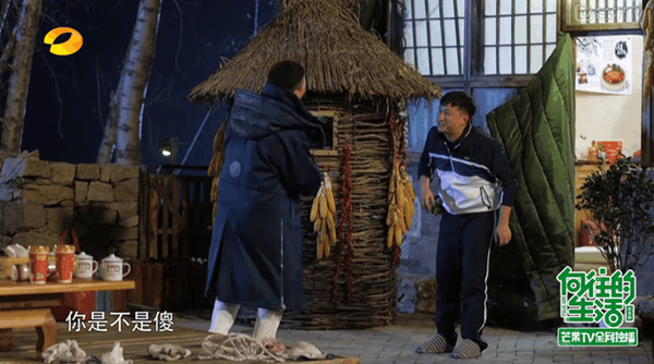 然后两个大男人相见的时候,黄磊先是错愕,然后是惊喜,直接问孙红雷:你si不si傻?