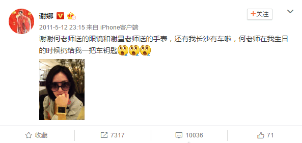 何炅没有说什么,因为谢娜在长沙一直没有车,于是不久后,何炅就趁着谢娜生日的时候,扔给她一把车钥匙!