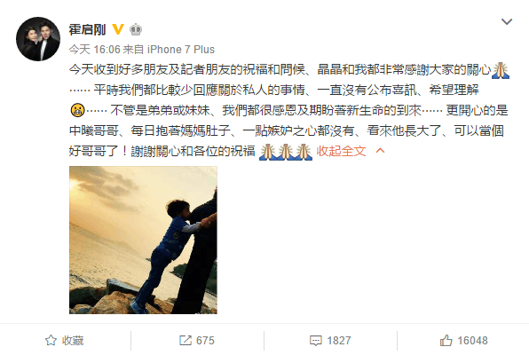 或许很多人不知道的是,在同一天霍启刚发了微博承认了郭晶晶怀二胎,只不过不知道是男孩儿还是女孩儿。