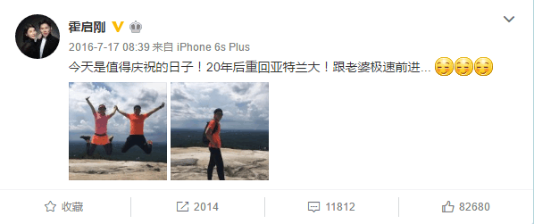 2016年的7月17号,时隔644天的霍启刚更新了微博,就是为了秀恩爱!