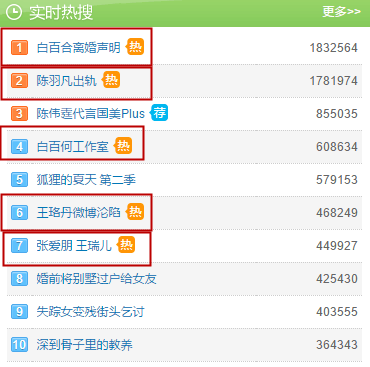 然后微博上挂了一天之后,又变成了#白百何离婚声明#(结果什么都没有= = ),和#陈羽凡出轨#然后又...)。