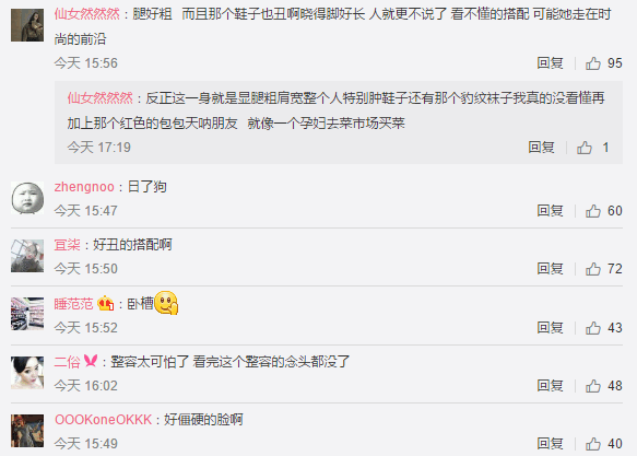 网友的评论也是在围绕着张歆艺“胖、丑、整容脸”三个点讨论。
