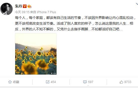 划重点:朱丹的意思是怎么说这是个人的人生,别人无权干涉;最后一句这是暗讽网友多管闲事吗?表示外界的不知道真相,凭什么去指手画脚......