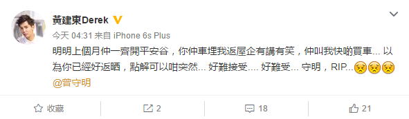 此消息也是他的好友,同是TVB演员的黄建东发出的。