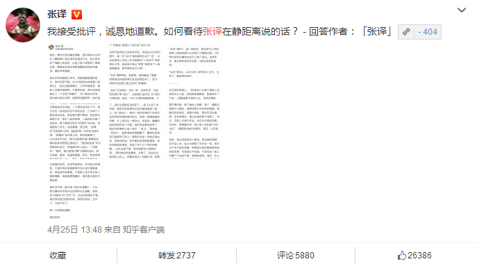 于是,兜兜转转了一天后,张译终于正面承认了此事,并且表示对自己的行为道歉,接受网友对他的批评。