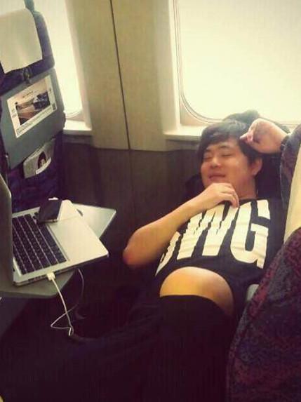 张晋佑在高铁上,一个人享受高铁空调三坐卧铺。吼吼