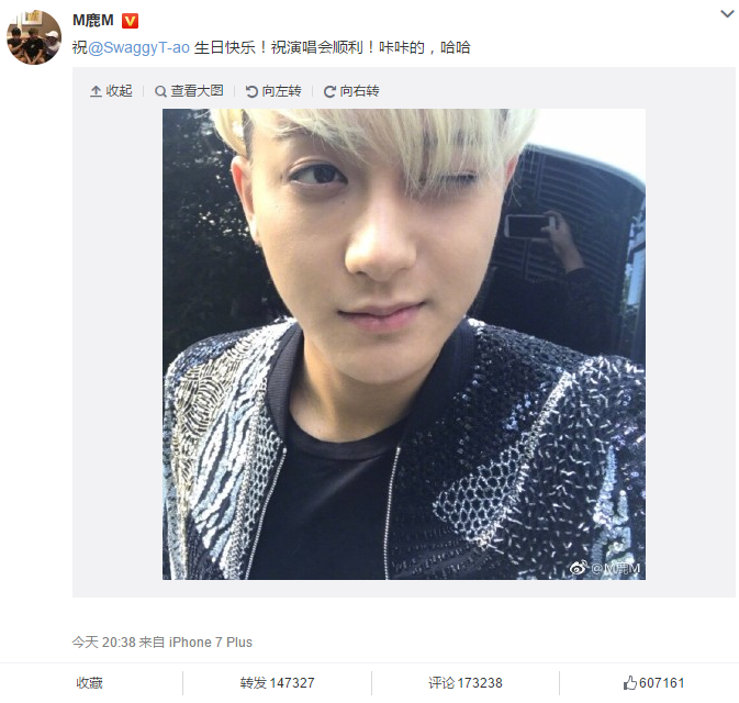 结果打开一看并没有想象中撕逼盛况...反而是鹿晗祝福黄子韬生日快乐...