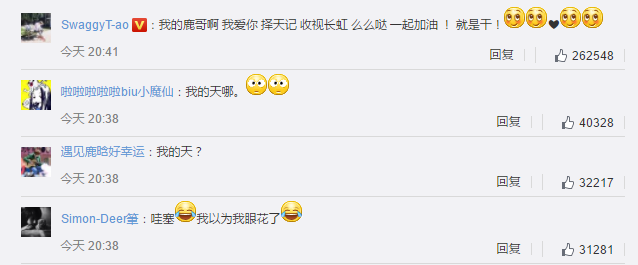 而黄子韬在底下回复,不仅直呼鹿哥,而且言语之间各种“腻歪”,俨然一副好基友的模样。就连粉丝们都感叹不可思议,大喊眼花了...
