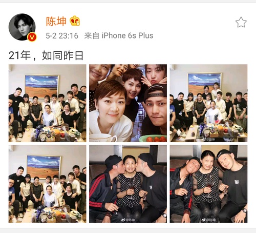 过去几十分钟后,陈坤又继续更新聚会照片,又带上了两人重复的同框照片,感叹21年,如同昨日。