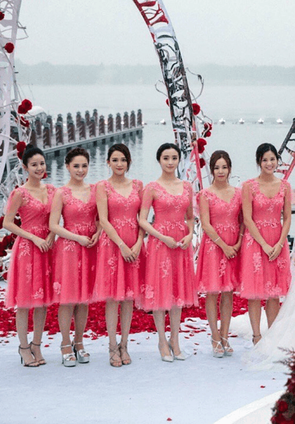 伴娘团们的服装则是淘宝影楼风的质量,衣服太透可能也是为了省布料。