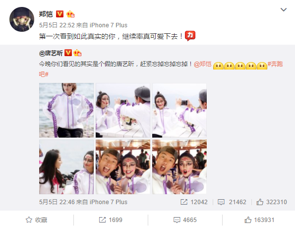 郑恺和唐艺昕的互动。