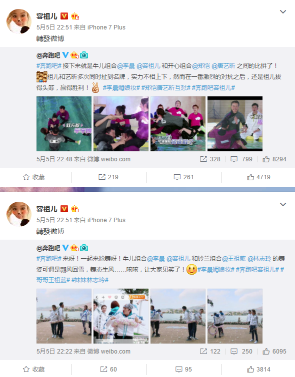 容祖儿也转发了和李晨组成的“牛儿”组合。