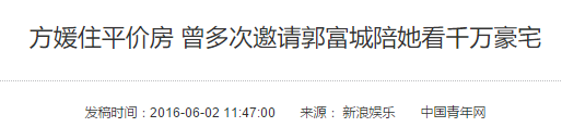 早在两人在高调恋爱期间,方媛虽然贵为“天王嫂”,但在上海的房子却一直自己租的酒店式公寓,并且还传出多次邀郭富城陪她看价值千万的房子,却引来郭富城对这段恋情的急速冷冻。