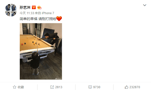 被曝光之后的孙艺洲连忙到微博称是简单的幸福,希望能安静的幸福下去~