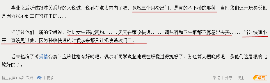 随后被网友爆料称,其实孙艺洲早在大学时,就有过三个月不出门,是真的不下楼的那种,并且比女生还能网购,天天在家收快递,调味料和卫生纸都不愿意出去买,是名副其实的宅男。
