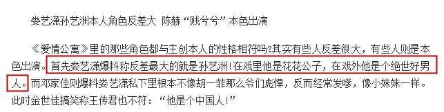 但在戏外的孙艺洲走的却是角色的反方向,娄艺潇就曾评价过孙艺洲是绝世好男人。