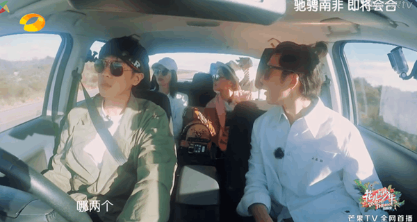 当时井柏然、张若昀和江疏影以及赖雨濛在同一辆车上,出发去找陈柏霖,但似乎是有点无聊?于是江疏影突然说起井柏然与付辛博两人参加比赛的时候,还感叹这两小孩怎么长的那么好看呢。