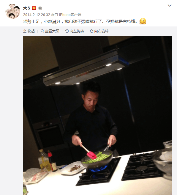 后来在孕期的时候,由于婆婆张兰害怕她怀不了健康的宝宝,于是大S为了孩子开过一段时间的荤,孕后还是会坚持吃素,到现在已经十几年了。