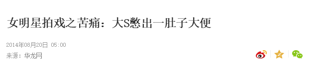 大S淑女到什么地步呢?有一点其实很好说明,大S在外活动时,当遇到自己要放屁之类的内急时,她都会憋着,曾经还有一条新闻说她憋出过一肚子大便...