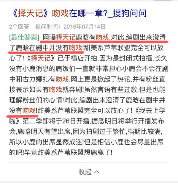 鹿晗和片方都未曾正面承认吻戏一事。http://image.uc.cn/o/wemedia/s/2017/35ab0266823a603b09e81828f6d428a4x468x500x48.jpeg;,3,jpegx;3,700x.jpg相关片段可能遭删减" TITLE="《择天记》鹿晗吻戏起争议,