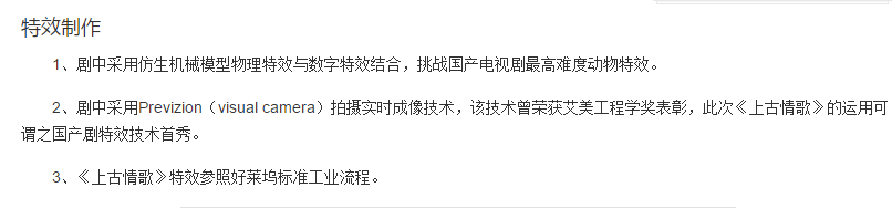 而且《上古情歌》官方宣传特效时,可是说自己参照了好莱坞标准工业流程,还用到了国产剧首秀的Previzion(visual camera)拍摄实时成像技术,该技术曾荣获艾美工程学奖表彰。