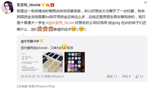 朱圣祎的回应很有力,并且表示自己卡里都没超过过8万,哪来的每月十万的打款?并且还说了手机是朋友送的,不存在金主的说法。