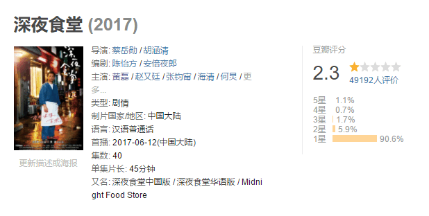 另外也有不少观众指出,《深夜食堂》评分低的几处原因分别是: