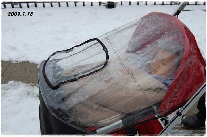 往韩国女孩家的楼那边走.....外面下起了大雪,我把小托裹得严严实实的,他悠闲的欣赏着雪景。