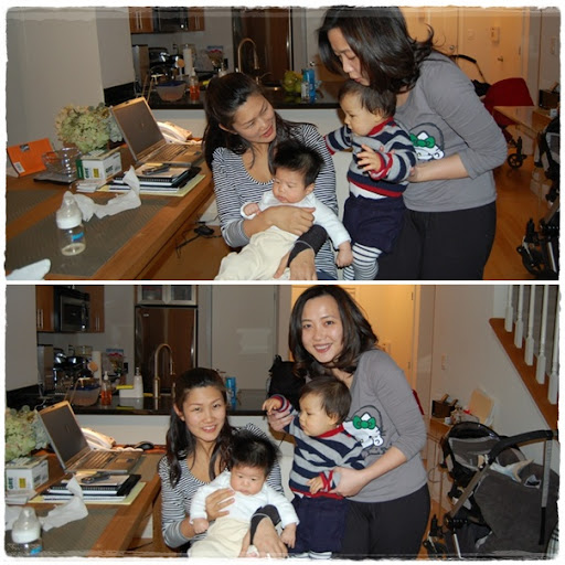 小区里有几个妈妈生孩子,大家因为都是第一次当妈妈,去年夏天的时候在游泳池碰到就自然的聊起了孩子经,久了,也就成了你来我往的朋友,俗话说远亲不如近邻嘛。现在大家的娃儿也生了,闲下来还会约约一起上上小区里的瑜伽课啥的。上课是次要,出来透透气,离开尿布和奶瓶充斥的世界是主。特别是全职在家带孩子的妈妈们,这种抽离一下的愿望就更强呢。其中一个韩国女孩的孩子刚生下来不久我见过一次,这是我第二次去看她的Baby,顺便带上小托去看看‘小弟弟’。小弟弟两个多月了。