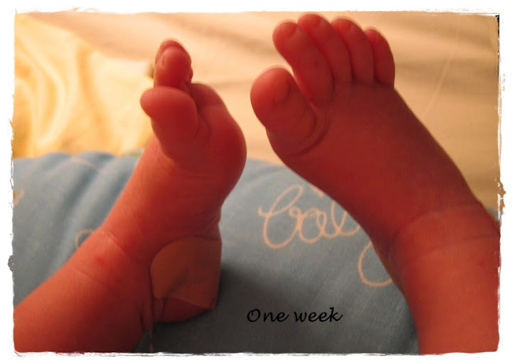 小托一周大。他爸爸看到他的第一眼,就跟我说,这个孩子有双巨大的脚丫儿。